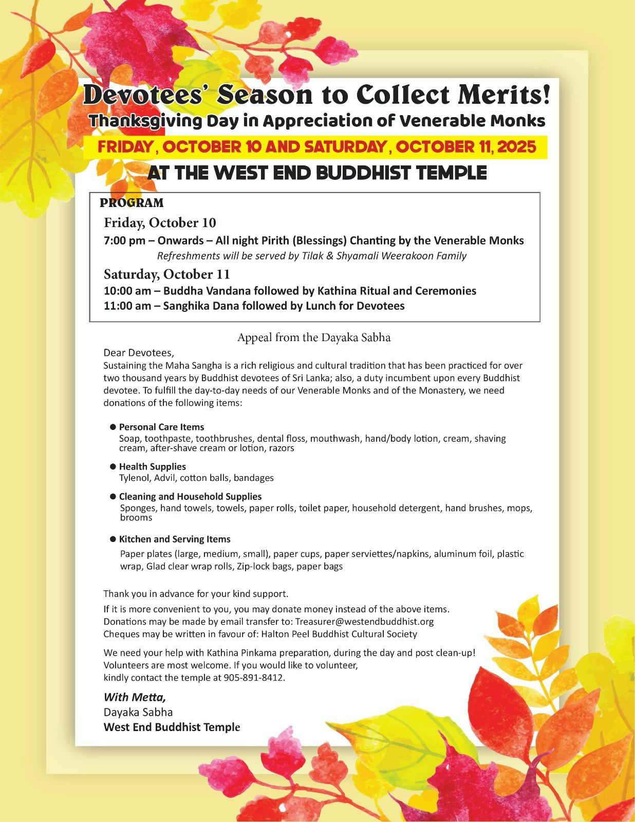 Kathina - Buddhist Thanksgiving Day! Gifts for the Temple!