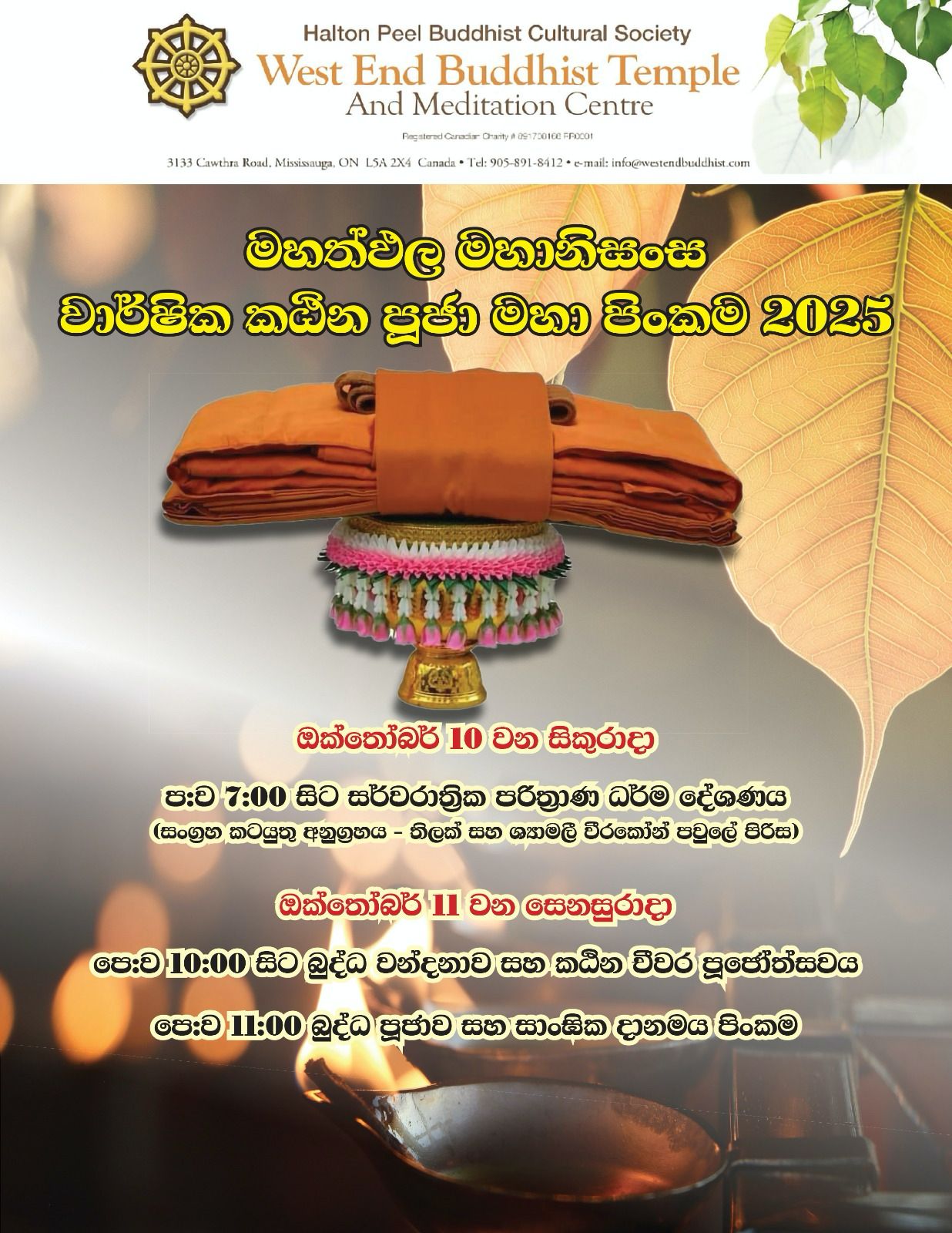 Kathina Day - 10th Friday and 11th Saturday of October 2025